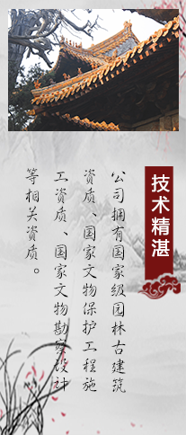 堅(jiān)持質(zhì)量為先,信譽(yù)為重,管理為本,服務(wù)為誠(chéng)的理念。本著對(duì)社會(huì)、對(duì)建設(shè)單位負(fù)責(zé)的原則,將工程質(zhì)量、安全生產(chǎn)放在工作的重要位置。我們堅(jiān)持發(fā)展古建藝術(shù),弘揚(yáng)民族文化,作為企業(yè)的經(jīng)營(yíng)管理理念。曲阜古建筑義德古建始終秉承“科學(xué)管理,創(chuàng)精品工程,打造古建筑行業(yè)標(biāo)準(zhǔn)”的方針,追求更高質(zhì)量,為文物保護(hù)、傳統(tǒng)建筑事業(yè)做出貢獻(xiàn)。